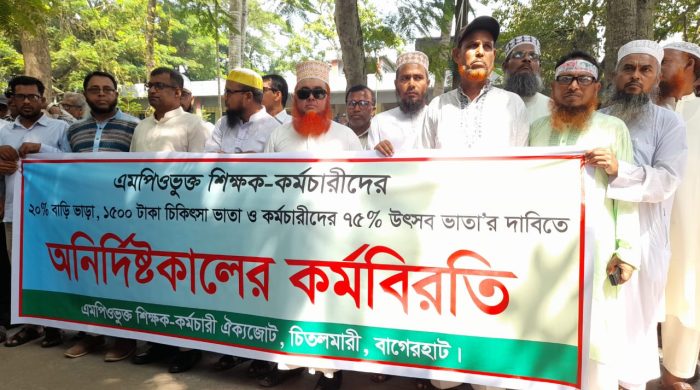বাগেরহাটের চিতলমারীতে এমপিওভুক্ত শিক্ষকদের তিন দফা দাবি আদায়ের আন্দোলনকে আরও বেগবান করতে এক মতবিনিময় সভা অনুষ্ঠিত হয়েছে।